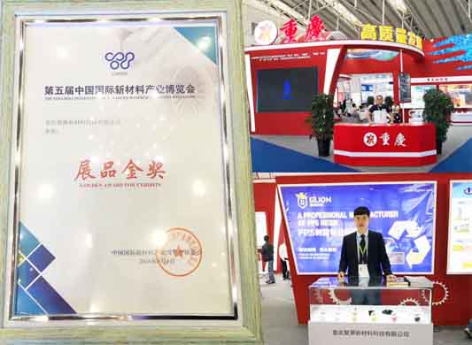 2018年9月6-8日,工信部和黑龍江省人民政府在哈爾濱國際會展體育中心聯合主辦 “第五屆中國國際新材料產業博覽會”,在本屆博覽會上,我司展品“聚苯硫醚”受到了國內外同行業的高度關注和訪問,并得到了本屆博覽會組委會的一致認可,經組委會和參會單位的推選,我司展品榮獲本屆博覽會“展品金獎”。